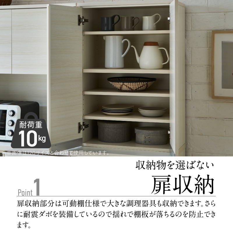 ・上台の両開きの棚には多くの食器が収納でき、出し入れも簡単です。
