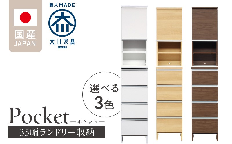 熟練された職人が造る、久留米市自社工場生産家具。 ランドリー収納 【ポケット 35 HI】_ランドリー収納 ポケット 35 HI 大川家具 収納 お手入れ 簡単 機能性抜群 引出 スライドレール 可動棚 洗濯物 洗面所 隙間収納 お洒落 日本製 お取り寄せ 福岡県 久留米市 送料無料_Qd077