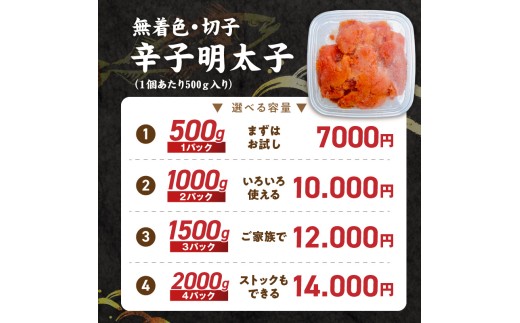 【10月お届け】無着色辛子明太子 切子 500g×3個(1,500g) _Mm007-m10