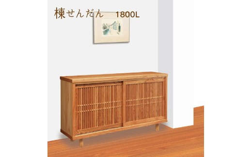 厚さ5cmの天板と格子状にデザインされた扉はセンダン無垢材、側面はセンダンの突板を使用。