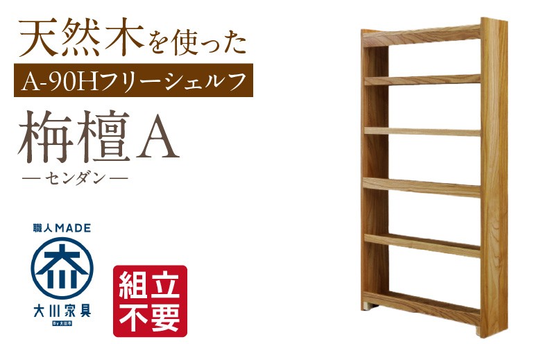【組立不要】大川家具 フリーシェルフ[センダン]A-90H _ 大川家具 フリーシェルフ センダン A-90H ブラウン 幅 92cm 国産 本棚 シェルフ 組立不要 可動棚 アジャスター 調整可能 オープンシェルフ カビが出づらい オイル塗装 環境に優しい 無垢材 棚 日本製 お取り寄せ 福岡県 久留米市 送料無料 _Qd103