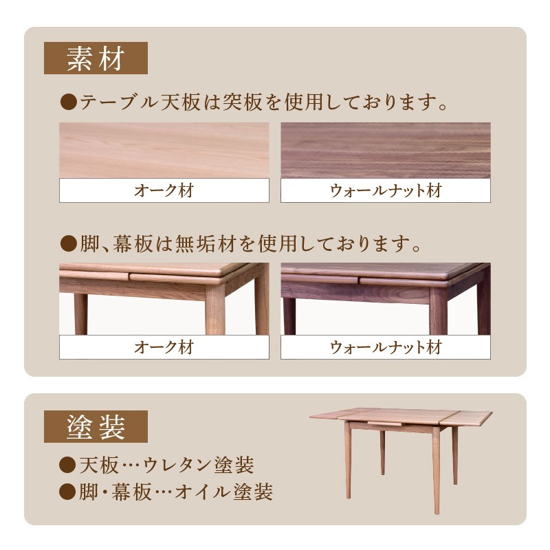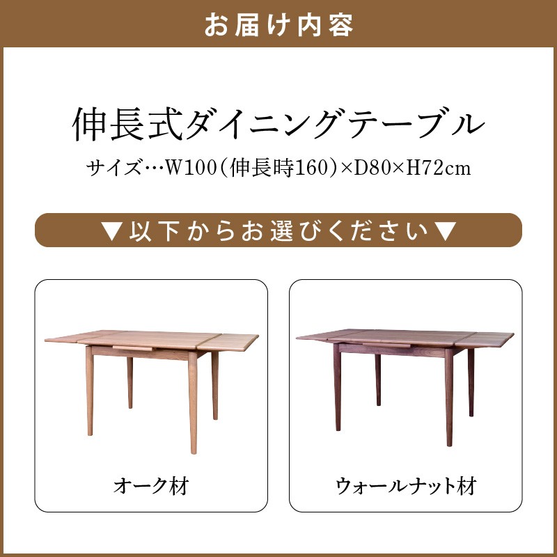| 容量 | W100(伸長時160)×D80×H72cm 【下記より樹種をお選びください】 ・オーク材 ・ウォールナット材 |