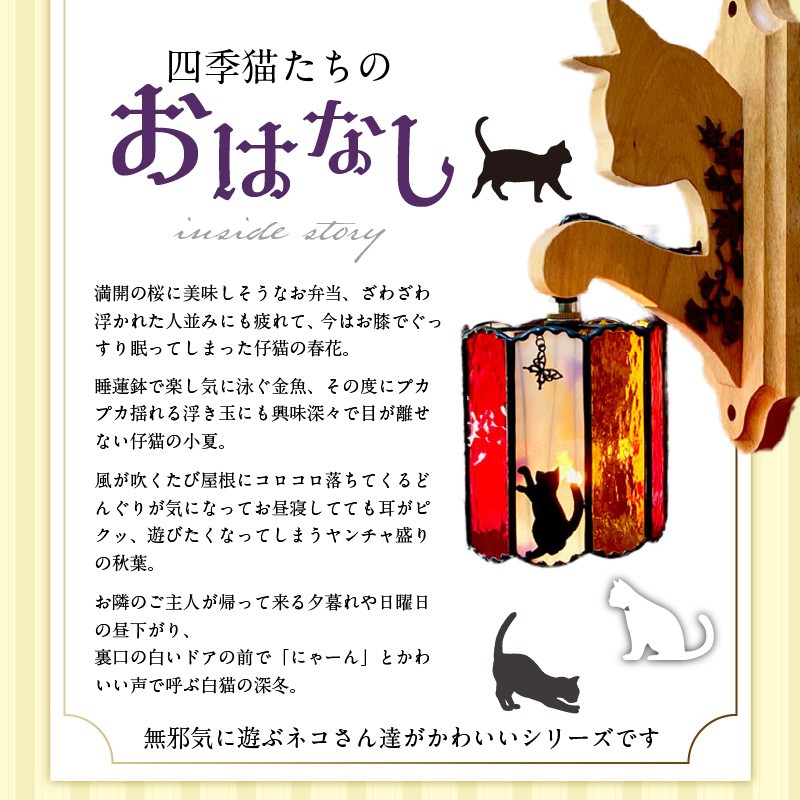 路地裏から届く光の道標、ネコさんが灯す四季の灯り ウィッチーズキッチンのステンドグラス 猫さんのブラケットライト『路地裏の四季猫』 _ ステンドグラス ブラケットライト 猫 四季 照明 壁掛け照明 灯り ランプ グラスシェード ライトベース LED対応 ハンドメイド 工芸グラス リビング ダイニング おしゃれ レトロ 福岡県 久留米市 お取り寄せ 送料無料 _Qb041
