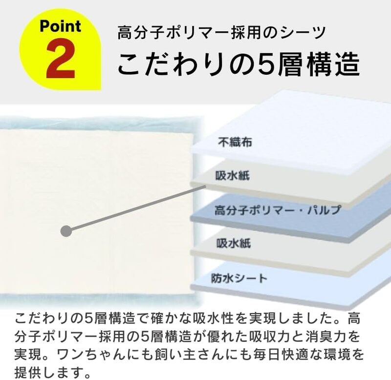 吸収力:オシッコをすばやく吸収し、表面の逆戻りを防ぎます。