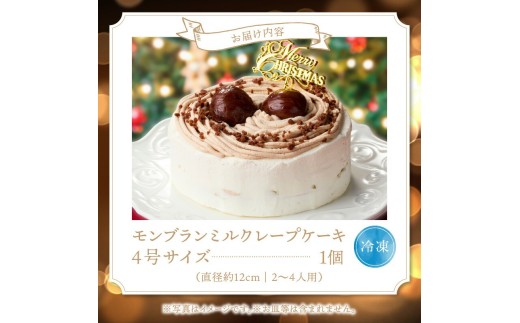 【先行予約】2025年発送 クリスマスモンブランミルクレープ4号サイズ _ クリスマスケーキ モンブラン ホールケーキ ミルクレープ 4号 ケーキ クリスマス 成分無調整豆乳 和食のたまご 濃厚クリーム マロンクリーム 栗の渋皮煮 スイーツ デザート お祝い 冷凍 福岡県 久留米市 お取り寄せ 送料無料 _Dw096