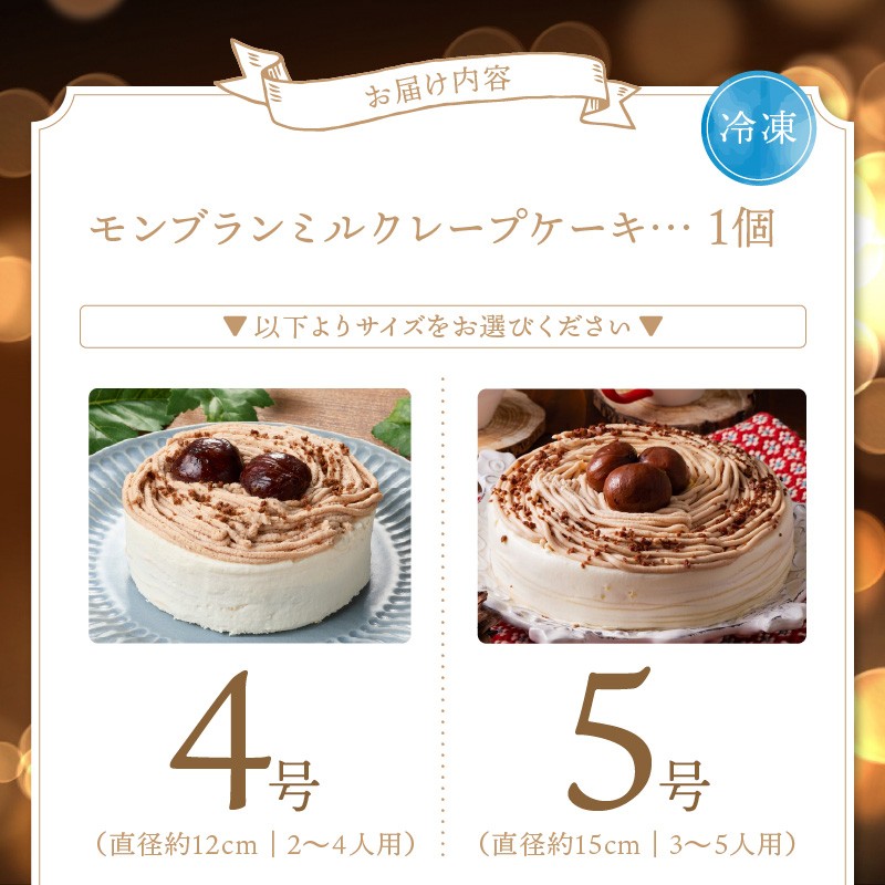 モンブランミルクレープケーキ _ モンブランミルクレープ 選べる サイズ 4号 5号 ピック モンブラン ミルクレープ スイーツ ケーキ クリスマス シュシュクレープ 濃厚クリーム マロンクリーム 渋皮煮 デザート ホール 冷凍 ベルディオ・ファクトリー お取り寄せ 久留米市 送料無料 _Dw054-sku