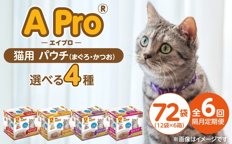 【隔月6回 定期便】A Pro 猫用パウチ 12袋入×6箱 _ 定期便 隔月 全6回 A Pro 猫用 パウチ 12袋入 × 6箱 計 72袋 × 6回 選べる 4種 まぐろ かつお ささみ かにかま おかか サーモン 愛猫 健康 至福のひととき ウェットフード とろーり 仕立て 水分補給 キャットフード 猫 子猫 シニア猫 福岡県 久留米市 _Tk092