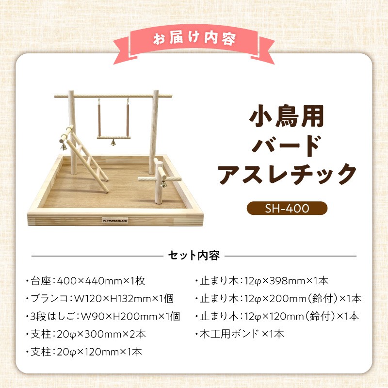 小鳥さんの小さな公園 小鳥用バードアスレチック SH-400 _ バードアスレチック 小鳥 手乗り小鳥用 室内用 遊び場 アスレチック ストレス解消 健康維持 ブランコ はしご 止まり木 おもちゃ 受注生産 ペット用品 お取り寄せ 福岡県 久留米市 送料無料 _Qx103