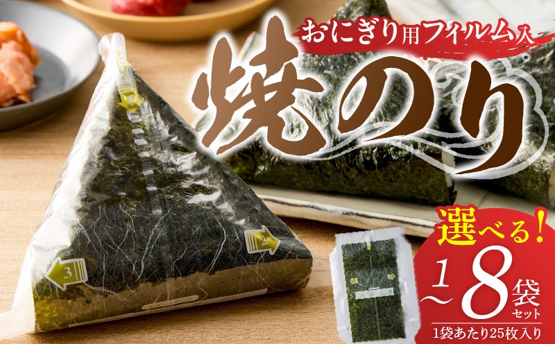 手軽にコンビニ風のおにぎりが作れます。お弁当作りに便利です。 焼のりおにぎり用フィルム入 _ 有明海産 焼のり おにぎり用 フィルム入 25枚 選べる 容量 1袋 2袋 4袋 6袋 8袋 コンビニ風 おにぎり 食べる時 パリパリ のり 国産 栄養豊富 遠赤外線焼き 旨み 衛生管理 安心 加工品 お取り寄せ グルメ お取り寄せグルメ 福岡県 久留米市 送料無料 _Cs416