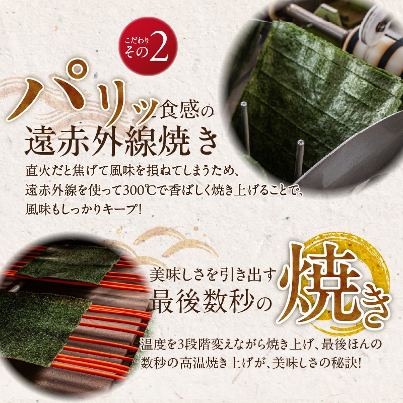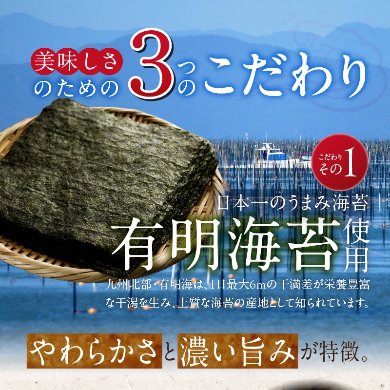 有明海産の海苔を使用し、パリッとした食感と香ばしさが特徴です。