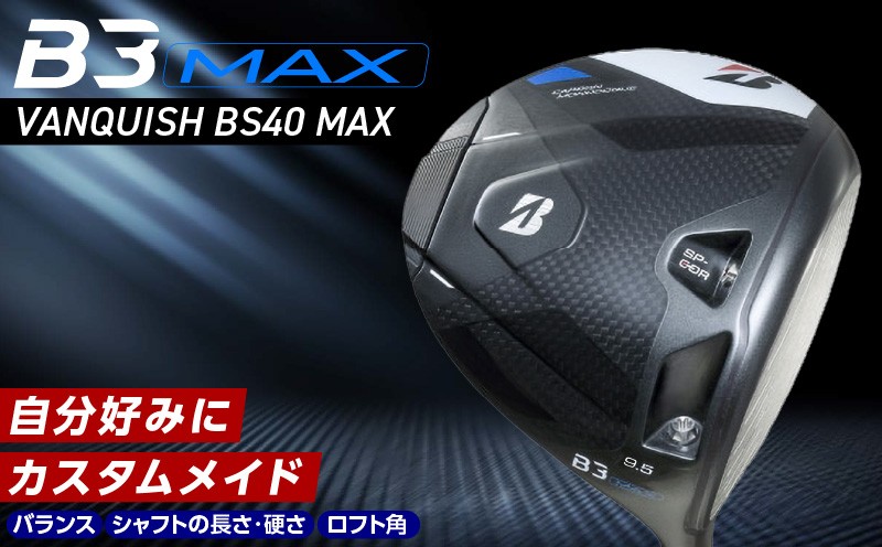 直進MAXで飛距離MAX B3MAX DRIVER(VANQUISH BS40 MAXモデル)_ ブリヂストン ゴルフ クラブ ドライバー B3 マックス バンキッシュ 選べる ロフト 9.5 10.5 ゴルフ用品 スポーツ カスタム カスタムメイド モノコック ブレずに飛ばす シャフトの硬さ 長さ バランス 2年保証 久留米市 送料無料 _Nx141-sku
