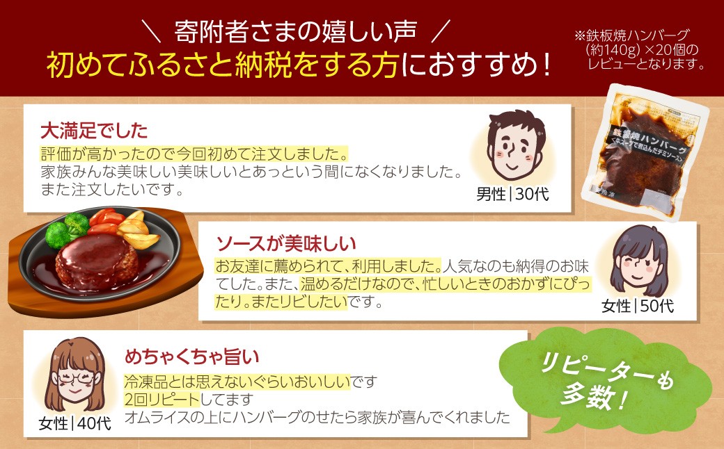 | 容量 | 鉄板焼ハンバーグ デミソース(約140g)×20個 |