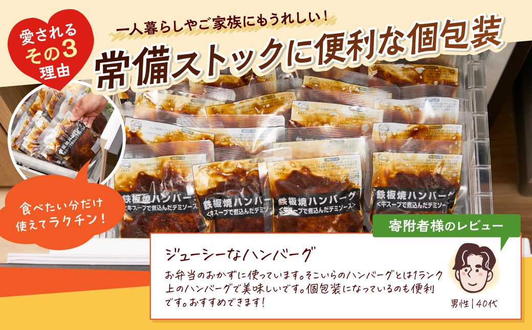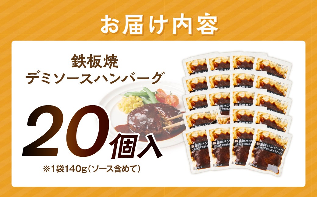 大好評の飯塚の鉄板焼ハンバーグ! 鉄板焼ハンバーグ デミソース 20個【A6-028】 惣菜 ハンバーグ 温めるだけ 福岡 飯塚 冷凍 小分け 肉 牛 簡単調理 特製 湯煎
