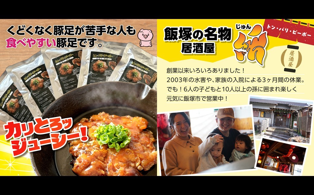 是非お酒のお供に、食卓の一品に飯塚の新名物!骨無し豚足トン・パリ・ピーポーをご賞味くださいませ。