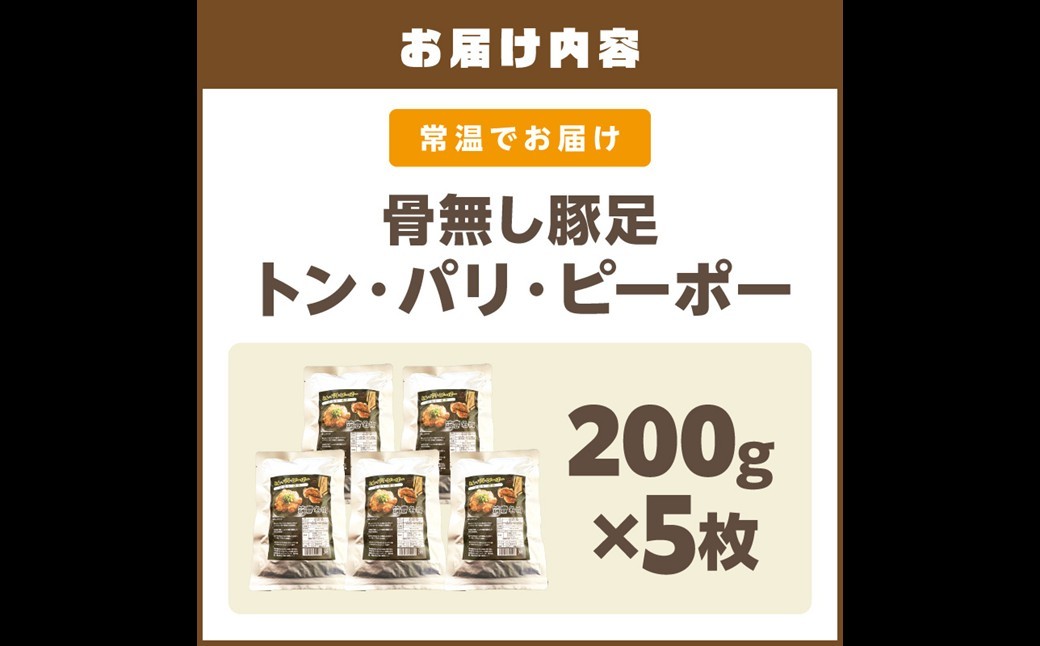 骨無し 豚足 おつまみ お手軽 一品 肴 B級グルメ 地元めし 飯塚名物 骨無し豚足トン・パリ・ピーポー(200g×5枚)【B5-046】