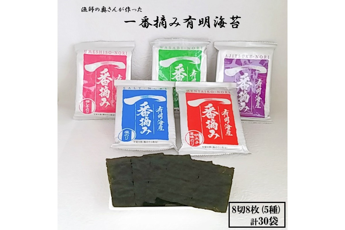 口に含むととろけるような食感が特徴の有明海苔! 漁師の奥さんが作った一番摘み有明海苔【A5-337】 海苔 のり 有明海苔 一番摘み 板海苔 味付 梅しそ わさび 塩 明太子風 詰め合わせ セット