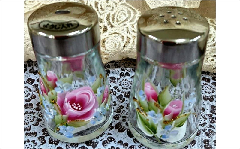 一つ一つ丁寧に描き上げた世界で一つだけの「ちょっぴり特別感」を感じてみませんか♪ ワンストロークペイント調味料入れセット【F3-005】雑貨 収納 調味料 花柄 セット