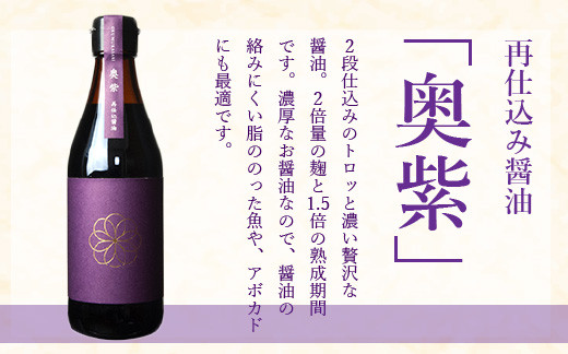 再仕込み醤油「奥紫」は、2段仕込みのトロッと濃い贅沢な醤油。