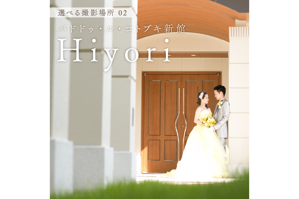 (撮影場所は勝盛公園だけでなく、パドドゥ・ル・コトブキ新館Hiyoriもお選びいただけます)