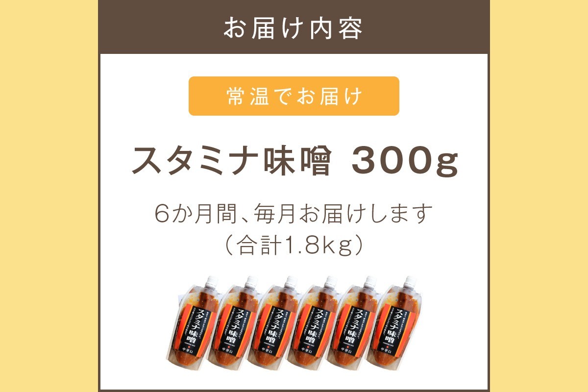 | 容量 | スタミナ味噌300gを6回お届けします(計6本) |