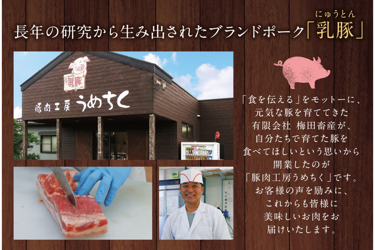 長年の研究による乳酸菌を自家配合した飼料で、一頭一頭大切に育てられた「乳豚(にゅうとん)」。