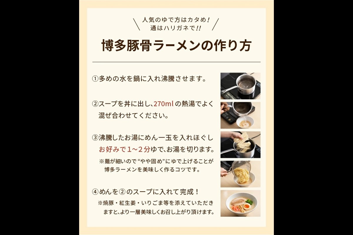 スープが絡みやすい細麺に、白濁とんこつスープと、さっぱり醤油とんこつスープ2種類の味をお召し上がりください。