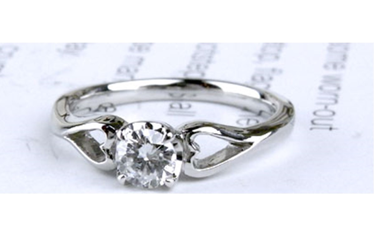 ダイヤモンドの横にあるハートの透かし細工が可愛らしさを際立たせている指輪です。