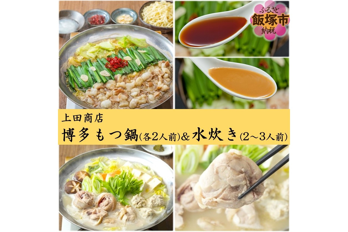 「上田商店」博多もつ鍋(各2人前)&水炊き(2-3人前)【C-157】 …