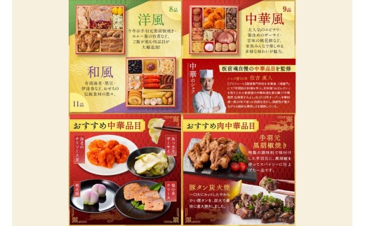 「板前魂の飛翔」特大八.五寸 和洋中華風三段重おせち(5人前)【…