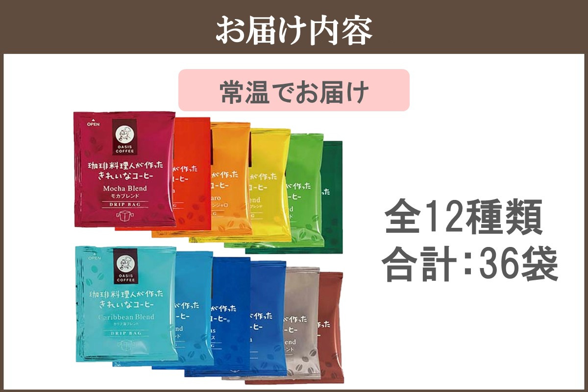 オアシス珈琲で大人気のドリップバッグ12種セットです。