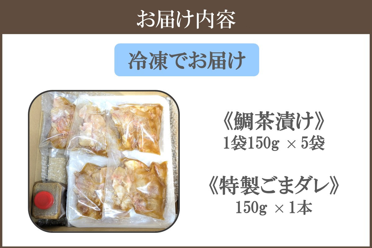 | 容量 | 鯛茶漬け: 1袋150g(特製ごまダレ40g・鯛110g)×5袋 特製ごまダレ:150g×1本 |