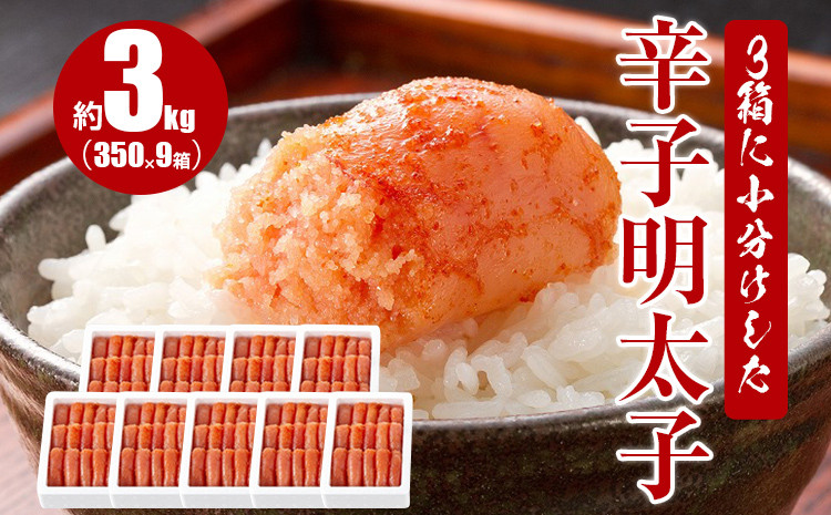 チョイスPayポイントと交換できる品 1箱350gにすることでより保存しやすくしました。味は贈答品と同じです。 3箱に小分けした辛子明太子 350g×9箱(計3.15kg)