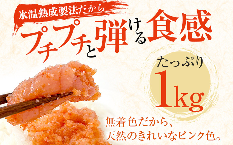 たっぷり1kgでお届けいたしますので、ご家庭で美味しい明太子をたくさん食べたい方におススメです。
