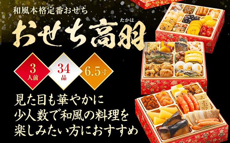 おせち高羽は、見た目も華やかに少人数で和風の料理を楽しみたい方におすすめの和風本格定番おせちです。
