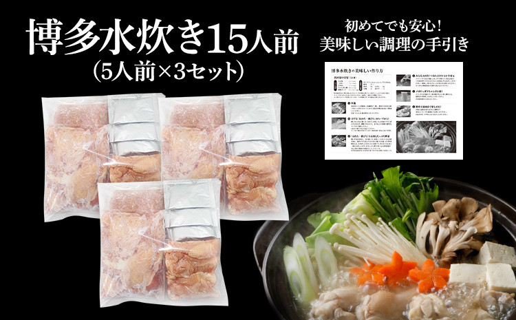 チョイスPayポイントと交換できる品 もも肉、手羽元、つみれ、野菜、特製スープからなる"旨みたっぷり"の博多水炊き。 博多 水炊きセット 15人前(5人前×3セット)鍋 もも肉 つみれ 手羽元 鶏肉 鍋セット モモ肉 鶏もも肉 年末 冬 鍋