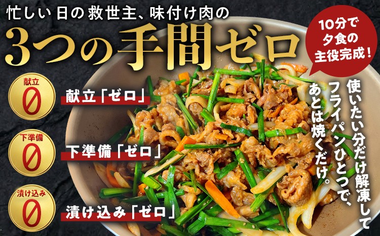 味付け済みで焼くだけ!こだわりのタレに漬け込んだ3種類のお肉をお楽しみください。
