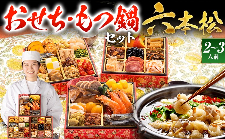 チョイスPayポイントと交換できる品 博多久松のおせちと国産和牛小腸100%のもつ鍋の贅沢セット! 【おせち&もつ鍋セット】本格定番和洋折衷おせち『六本松』 6寸 3段重・おせち全37品・2~3人前 + もつ鍋5人前セット おせち 2026 博多久松 おせち料理 2人前 3人前 醤油味 醤油 国産牛小腸 国産もつ モツ 鍋