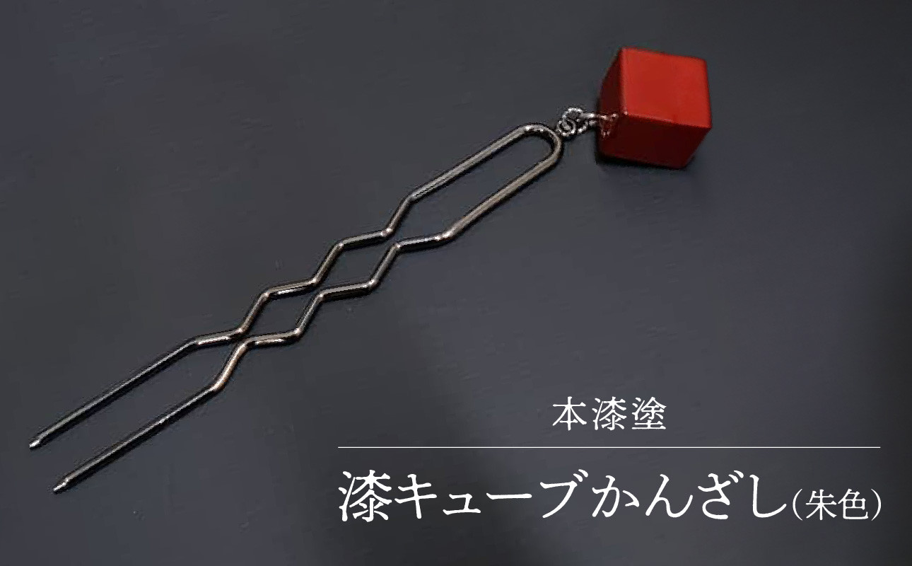 伝統工芸士の漆職人が12工程の手仕事により、丁寧に手塗りしたキューブカットの漆玉を使ったかんざしです。