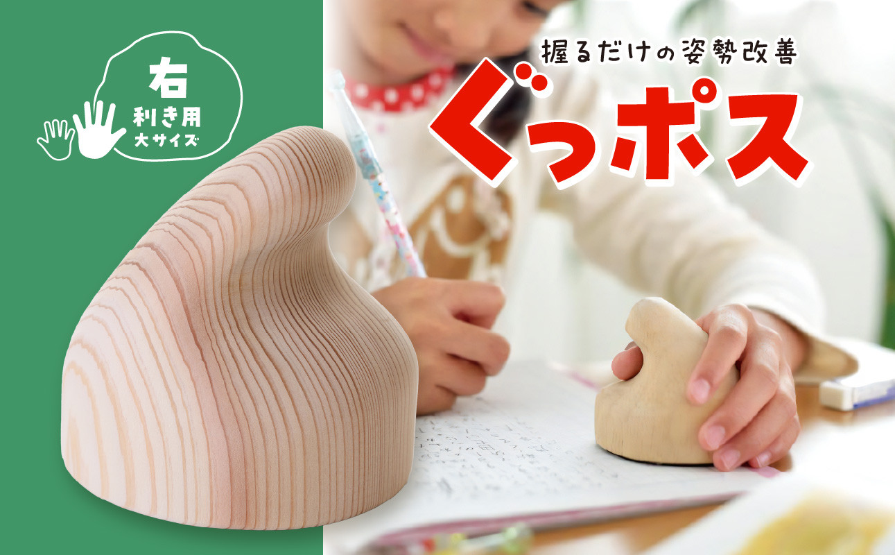 そんなお子さまの姿勢のために開発されたぐっポスは、猫背になりがちな筆記時にペンを持たない方の手で握って使うことで、猫背を予防・解消します。
