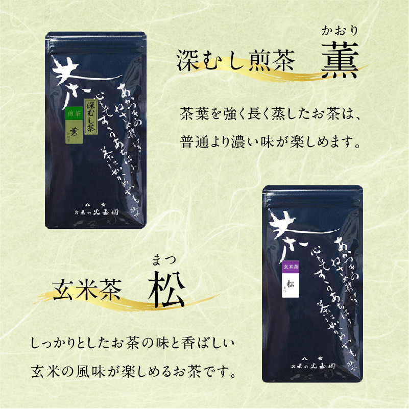 それぞれ味に特徴があり、いろんな味を楽しみたい方に最適な八女茶商品です 【お茶の光玉園】緑茶バラエティセット 人気の4種 各100g 計5本