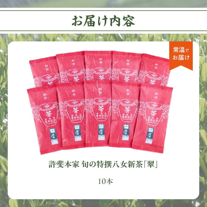 天然ビタミンCがたっぷり含まれた、「八十八夜」の旬の八女茶をご堪能ください。 【2026年新茶 自宅用】<八女茶>許斐本家 旬の特撰八女新茶翠10本セット【2026年5月発送開始】