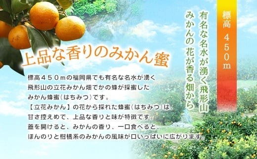 有名な名水が涌く飛形山の立花みかん畑で採蜜したみかん蜂蜜です。