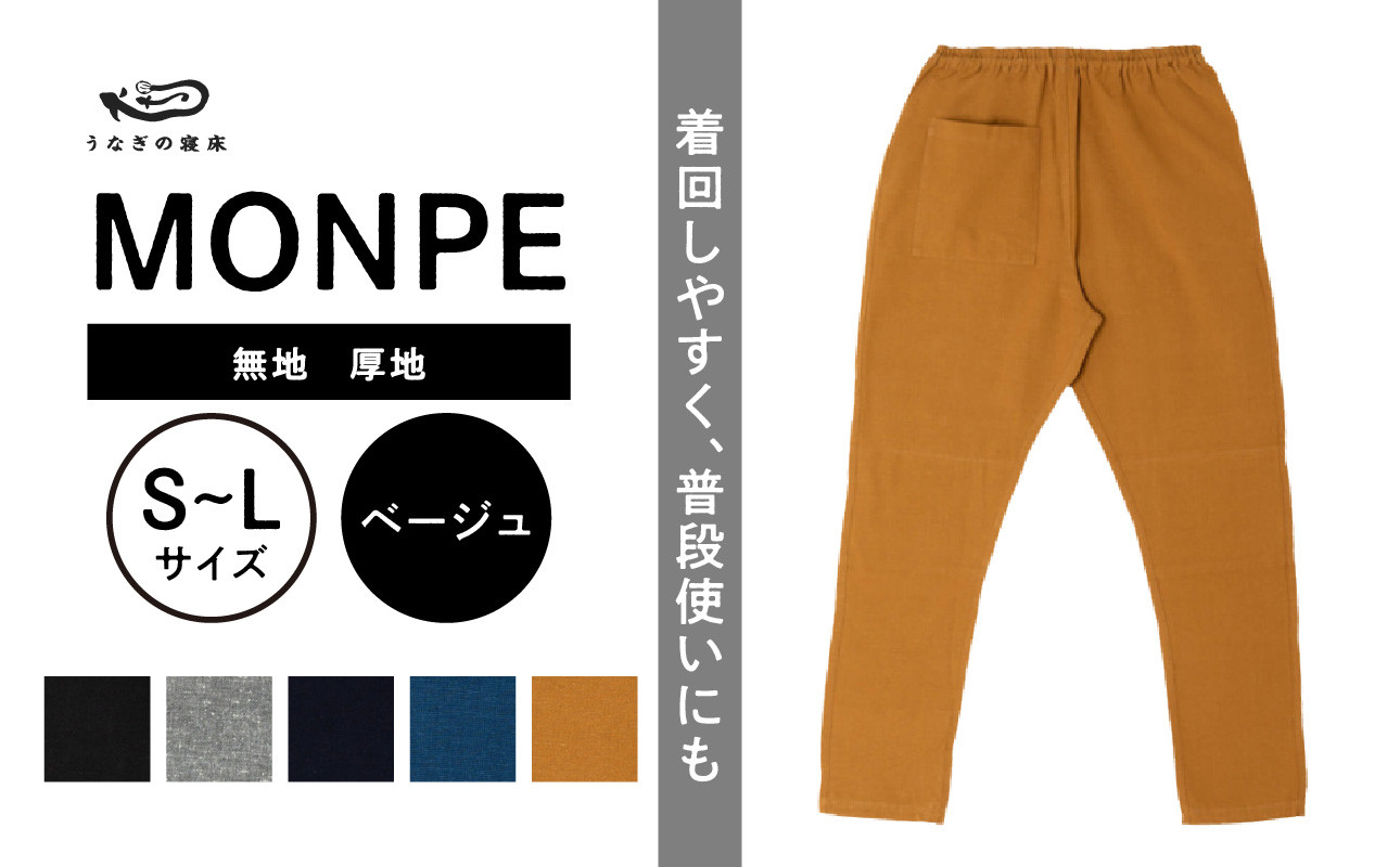 既存のもんぺよりも腰回りをすっきりさせ細身に!現代風MONPEで普段履きに♪ MONPE 無地 厚地 ベージュ