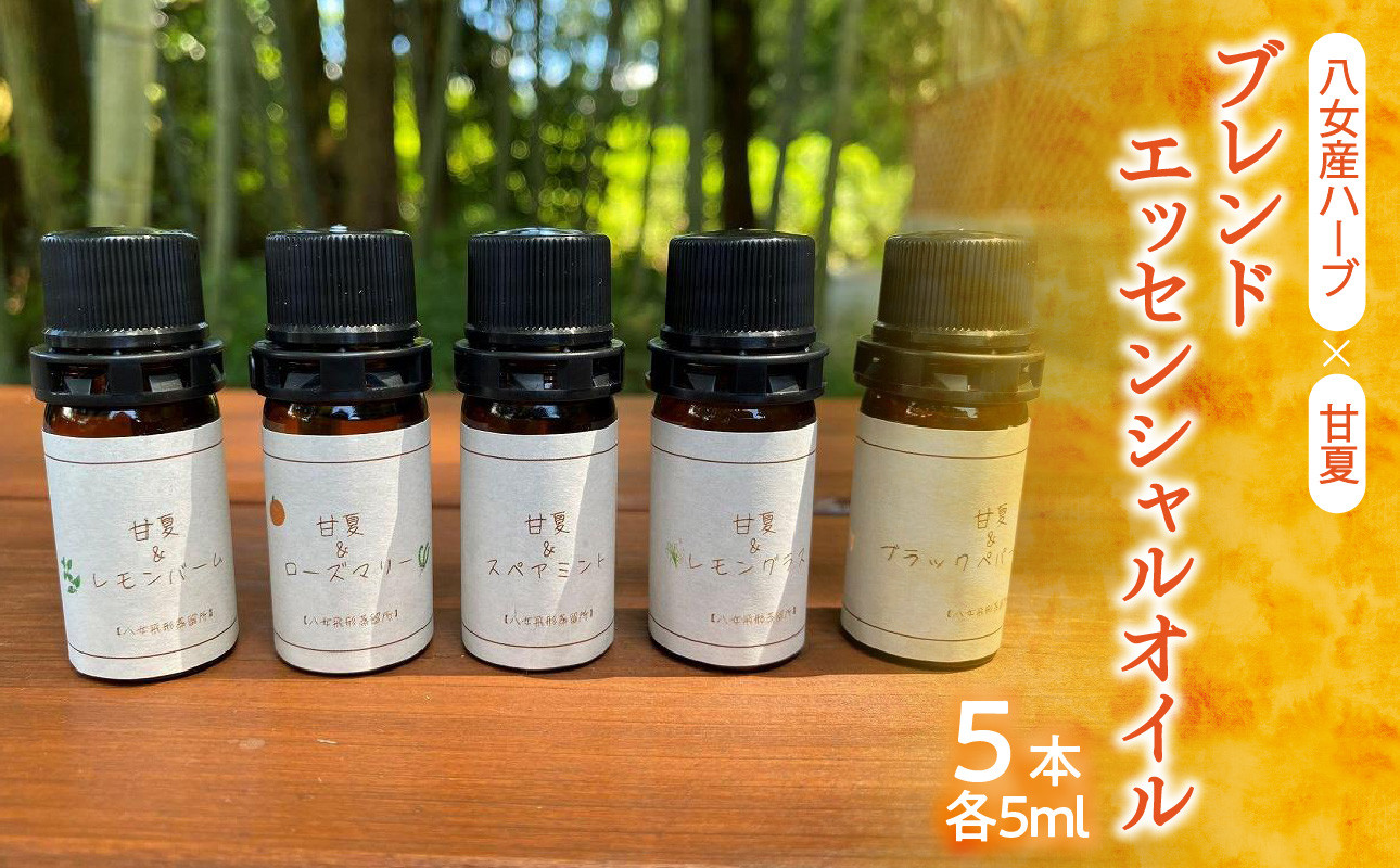 国産原料にこだわった安心・安全で純度の高いエクストラアロマオイルをお届けします 【ふるさと納税限定】八女産ハーブと甘夏のブレンドエッセンシャルオイル(5種類セット)