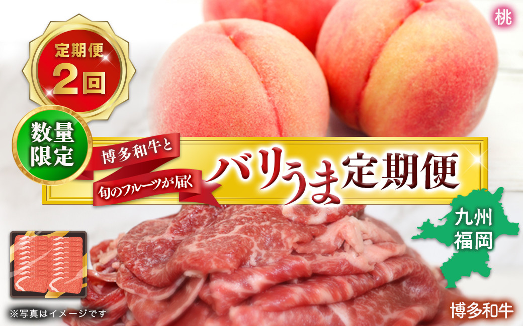 博多和牛と旬のフルーツをお届け! 博多和牛と旬のフルーツが届く! 九州福岡バリうま定期便 【全2回】D <配送不可:北海道・沖縄・離島>