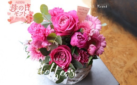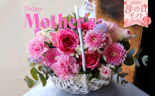 「母の日ギフト」八女のお花を使ったカゴアレンジメント(ピンク…