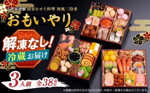 【千賀屋】おせち料理 初めてのお取り寄せにもおすすめ 千賀屋謹製 2027年 迎春おせち料理「おもいやり」和風三段重 3人前 全38品 おせち おせち料理2027 冷蔵12月31日 おせち料理 冷蔵 千賀屋 12月30日お届け 12月31日お届け 3人前