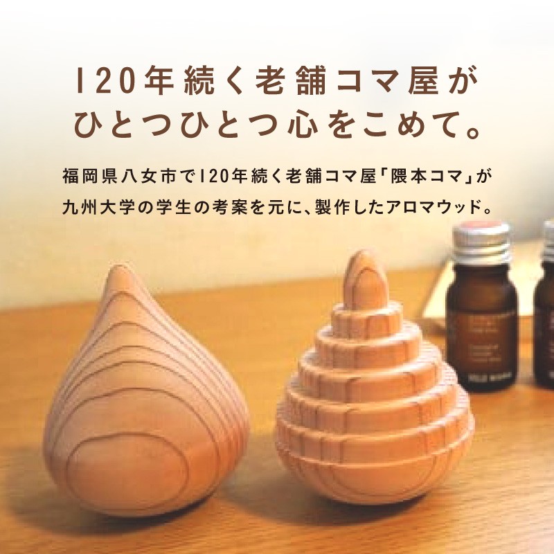 九州大学の学生が考案し、福岡県八女市で120年続く老舗コマ屋「隈本コマ」が1つ1つ丁寧に製作しています。