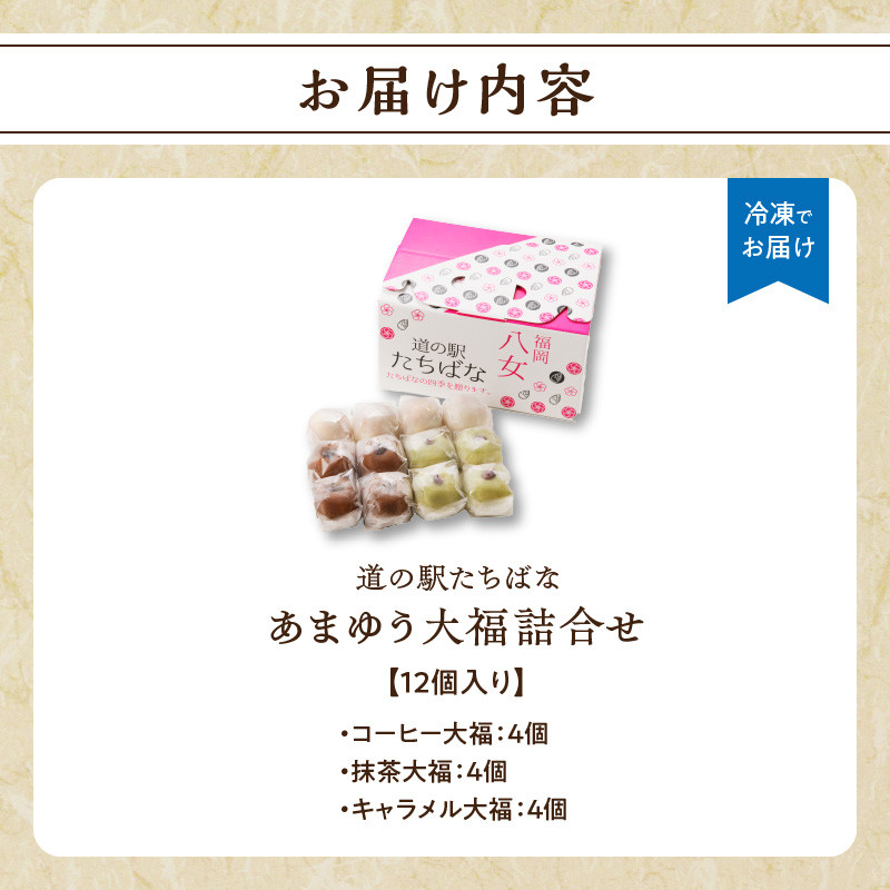 道の駅たちばなで大人気の商品、あまゆう大福詰合せ12個入り <道の駅たちばなオリジナル>あまゆう大福詰合せ12個入り 抹茶 キャラメル コーヒー 和菓子 洋菓子 八女茶 スイーツ 大福 セット 詰め合せ 福岡県 八女市