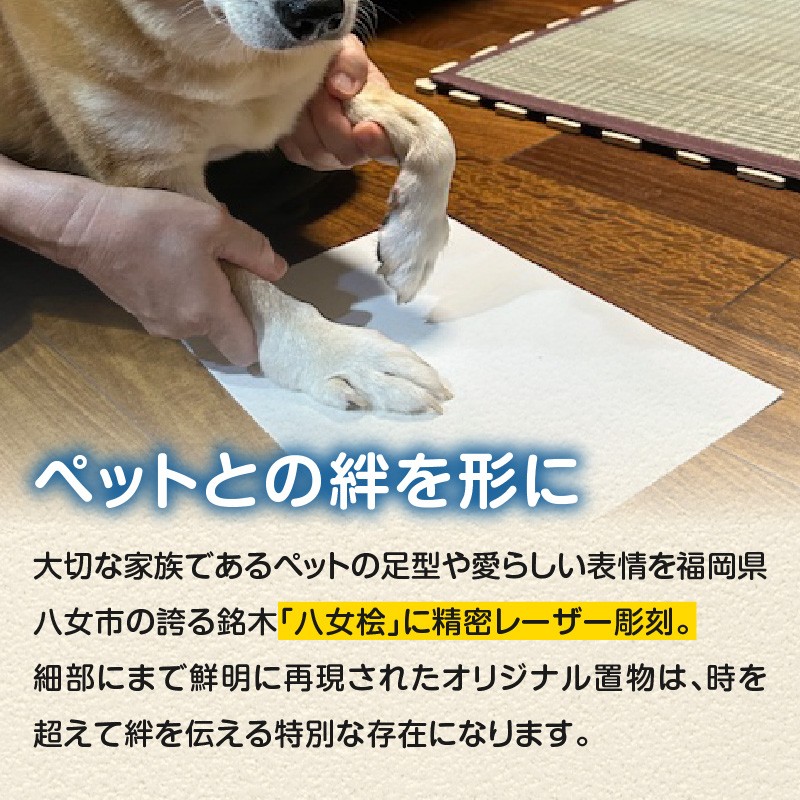 大切なペットへの想いを形に!世界に1つだけの木製メモリアルです♪ 木製メモリアル 八女桧×ペットの足形 ペットとの絆 ペット 木製 メモリアル 足形 オーダーメイド プレゼント レーザー彫刻 福岡県 八女市